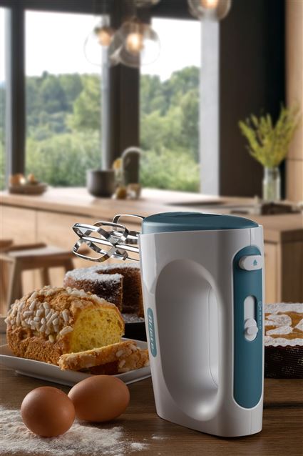 Batidora eléctrica multifuncional que acorta el tiempo de procesamiento y mejora la homogeneidad de los ingredientes. Gracias a los 5 niveles de velocidad y la función turbo, puedes decidir por ti mismo como mezclar tus ingredientes para obtener una masa suave y fácil de procesar. Es perfecta para la preparación rápida y fácil de recetas dulces y saladas, gracias a sus 2 varillas eléctricas: una para batir y otra para amasar. Puede preparar masas para pasteles, pan, pizza, crema batida y mucho más.