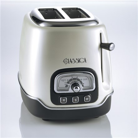 Con este tostador vintage podrás elegir entre varias funciones, descongelar, recalentar y cancelar. Incorpora, además, una rueda selectora de 6 niveles de tueste. Cuando el proceso de tueste ha finalizado, la tostadora expulsa automáticamente la tostada. Gracias a su bandeja recogemigas extraíble podrás limpiar de forma rápida y cómoda el tostador, asegurando así un perfecto mantenimiento del aparato.