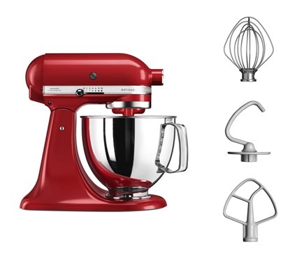 – Bol de acero inox. pulido con asa de 4,8L, bol en acero inox. pulido de 3L, batidor plano en aluminio y recubierto de nylon antiadherente, batidor varillas en acero inox. (alambres) y aluminio (cabezal), batidor gancho en aluminio y recubierto de nylon antiadherente y batidor con lado flexible en aluminio revestido de nylon antiadherente con lateral de silicona incl.