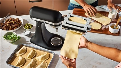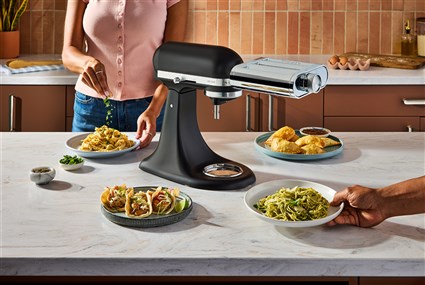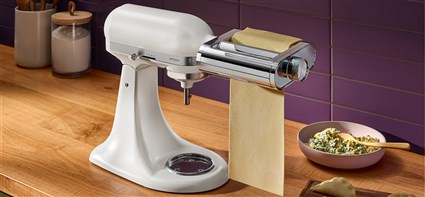 – Conectado al robot de cocina de KitchenAid1, el accesorio para pasta 3 en 1 permite enrollar y cortar pasta fresca fácilmente.