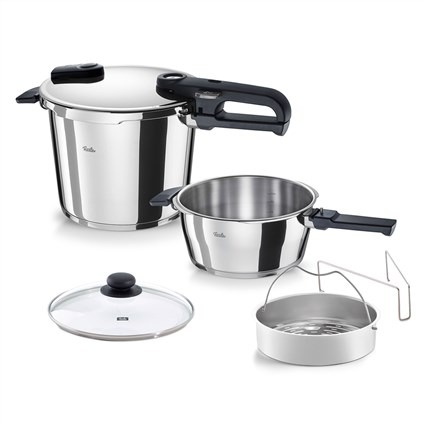 – Olla a presión Vitaquick® Edition 6L, 22 cmØ con cestillo perforado.