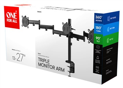 Transforme su oficina en un espacio elegante con nuestro soporte para dos monitores. Instale con facilidad los monitores uno al lado del otro, liberando un importante espacio en el escritorio y logrando la oficina bonita y organizada que siempre ha deseado. Con giro de 360°, inclinación de 140° y 3 brazos, garantiza un escritorio inmejorable con la mejor comodidad y productividad.