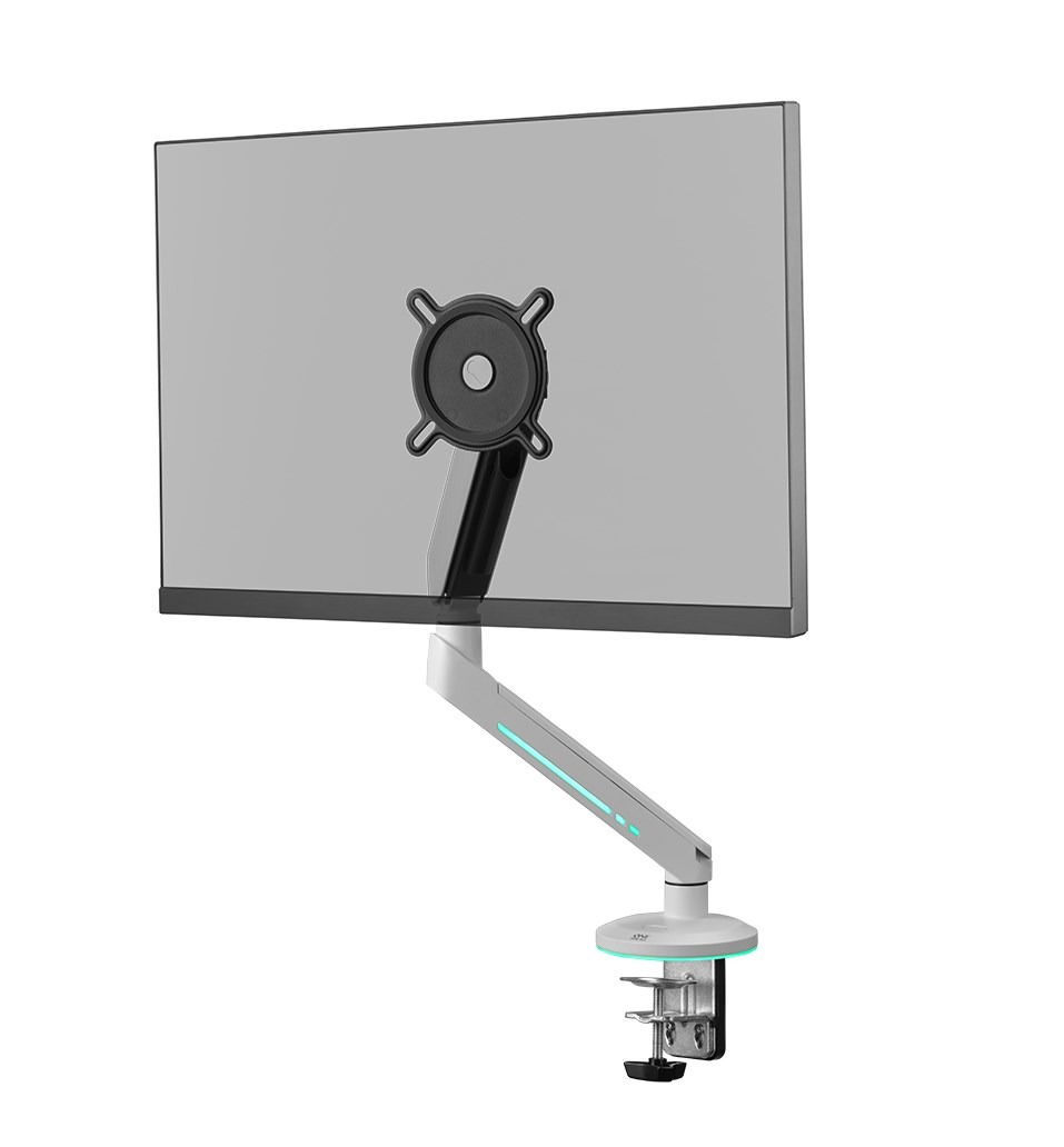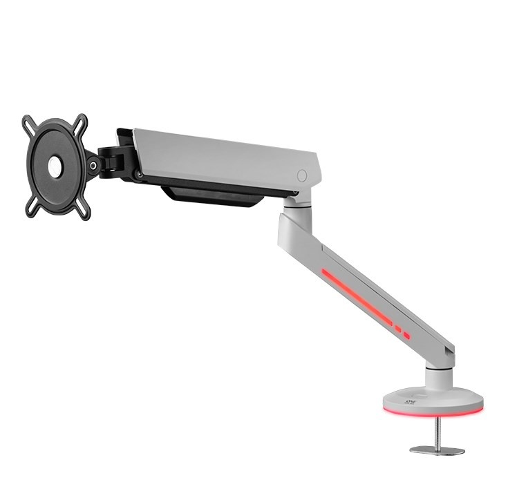 Nuestros brazos para monitor cuentan con un diseño elegante e iluminación RGB inmersiva, transformando tu configuración de juego en una experiencia visual impresionante. No solo aseguran que tu monitor permanezca seguro y estable, sino que también optimizan el espacio en tu escritorio, dándote más espacio para todos tus accesorios esenciales para el gaming.