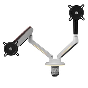 Nuestros brazos para monitor cuentan con un diseño elegante e iluminación RGB inmersiva, transformando tu configuración de juego en una experiencia visual impresionante. No solo aseguran que tu monitor permanezca seguro y estable, sino que también optimizan el espacio en tu escritorio, dándote más espacio para todos tus accesorios esenciales para el gaming.