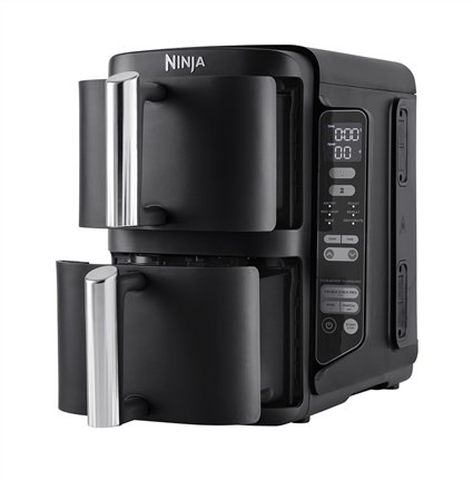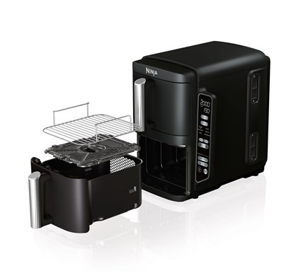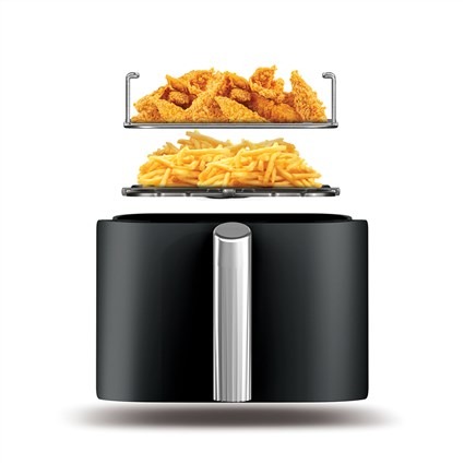 Descubre la freidora de aire que cocina dos alimentos, de dos maneras, y termina de cocinar al mismo tiempo, ahora con un diseño actualizado y elegantes detalles metálicos en gris oscuro. ¿Quieres cocinar para toda la familia o para amigos? Descubre 6 formas de cocinar: Max Crisp (gratinar), asar, hornear, recalentar, deshidratar y freidora de aire. También cuenta con la función SYNC & MATCH, te permite ajustar tiempo, temperatura y el programa diferente en cada cajón y ambos estarán listos al mismo tiempo! El panel de control digital con temporizador de cuenta atrás es fácil de usar y te permite ver fácilmente el tiempo de cocción restante. Cocina hasta un 25% más3, perfecto para toda la familia. Cada cajón tiene capacidad para un pollo de hasta 2 kg o 1,4Kg de patatas fritas. Hasta un 75% más rápido que los hornos eléctricos. El innovador ventilador autoajustable cambia automáticamente las velocidades según la función de cocción seleccionada. Se puede lavar fácilmente gracias a sus piezas antiadherentes y aptas para el lavavajillas.