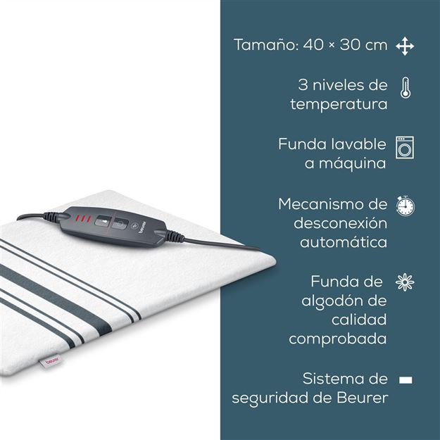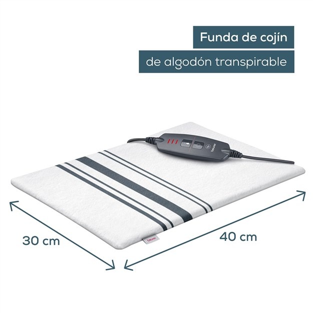 Esta almohadilla electrónica con superficie extra suave y funda extraíble te ayudará a relajar la musculatura y a aliviar las tensiones acumuladas con máxima comodidad y bienestar. Es transpirable, agradable al tacto y se adapta perfectamente al cuerpo. Gracias al rápido sistema de calentamiento, alivia la tensión de forma inmediata. Podrás lavar tanto la funda como la almohadilla en cualquier momento.