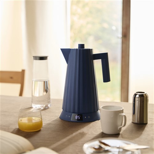 Hervidor eléctrico en resina termoplástica verde de la colección Plissé, que aporta un toque de refinada ligereza al hogar. La elegancia de los tejidos plisados de alta moda viste la serie de pequeños electrodomésticos diseñados por Michele De Lucchini. «La tetera Plissé tiene una forma definida por los pliegues de una técnica muy antigua pero siempre actual. Con un uso magistral y creativo del plegado, los diseñadores transforman los tejidos en prendas que se asemejan a auténticas esculturas de arte. Plissé toma forma a partir de una hoja de papel plegada, transformándose en un exquisito objeto de alta costura bajo la maestría de Alessi. Los pliegues dan forma a la forma, la moldean, la estructuran, porque una forma sin pliegues no es más que un volumen sin forma. Los pliegues transforman simples láminas bidimensionales en objetos tridimensionales.» Michele De Lucchi.