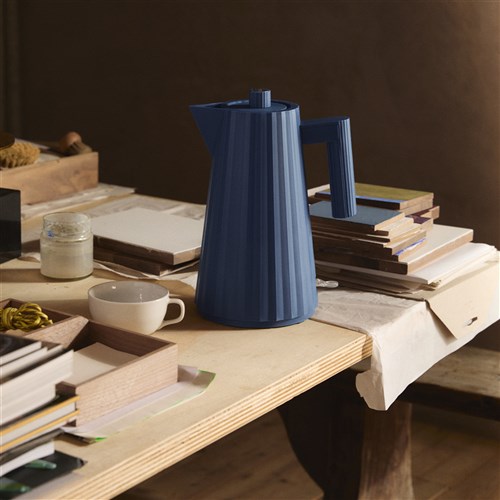 Hervidor eléctrico con control de temperatura de la colección Plissé, que aporta un toque de refinada ligereza al hogar. La elegancia de los tejidos plisados de alta moda viste la serie de pequeños electrodomésticos diseñados por Michele De Lucchini.