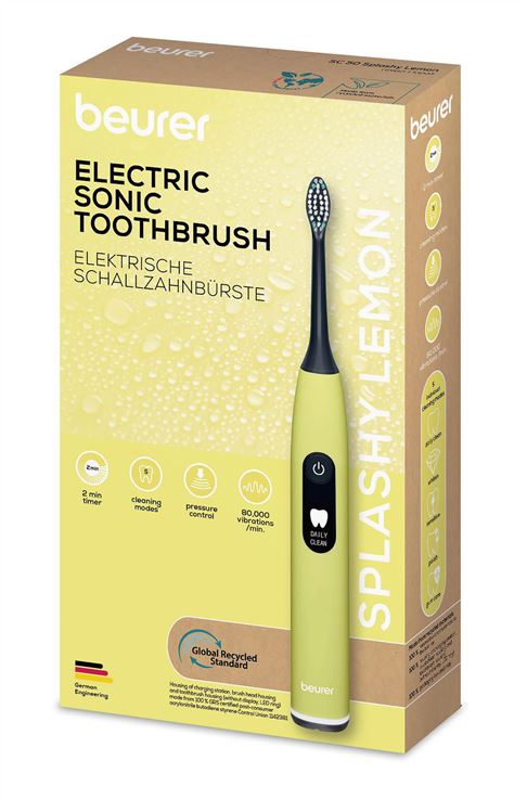 El cepillo de dientes sónico eléctrico SC-50 de última generación, está equipado con tecnología sónica avanzada para garantizar la eliminación completa de la placa. Con una impresionante frecuencia de 80.000 vibraciones por minuto, proporciona una limpieza eficaz para unos dientes y encías sanos. Cuenta con cinco programas de limpieza individuales: Limpieza, Blanqueamiento, Sensible, Pulido y Cuidado de las encías, que se adaptan a diferentes necesidades. La potente batería permite un tiempo de funcionamiento de hasta 22 días, lo que hace que el cepillo de dientes sea ideal para viajar. Además, está diseñado para ser respetuoso con el medio ambiente, ya que está fabricado con material 100% reciclado y las cerdas están hechas de materias primas renovables. Con dos cabezales de cepillo diferentes y una placa de carga magnética que ocupa poco espacio en el baño y se guarda fácilmente en el equipaje.